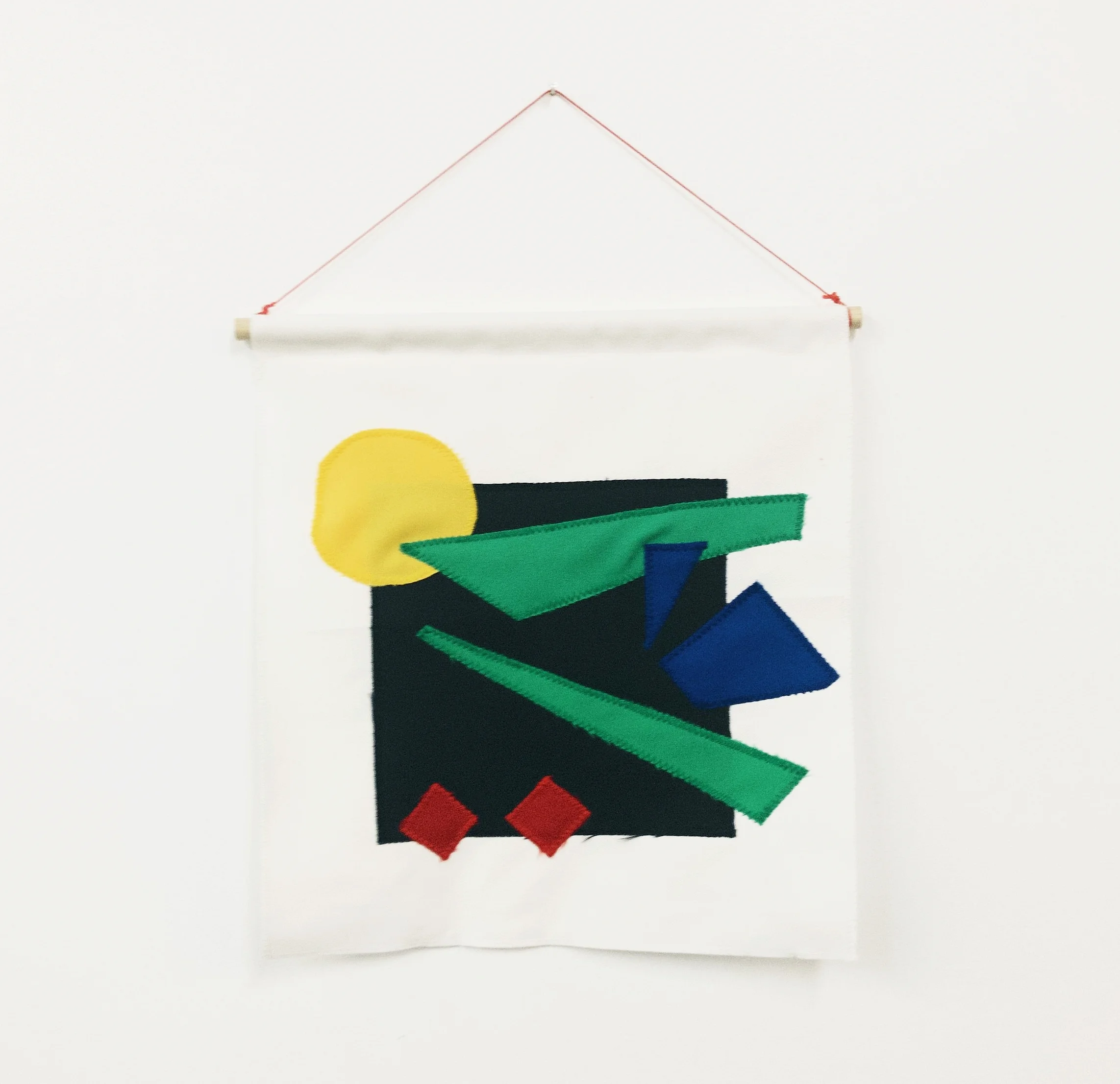 The freak flag is a cross between a nautical flag and a prayer flag. It does not belong to a specific region on a map, rather it belongs to the inner freak who lets it fly on their wall. Each piece is one of a kind, hand sewn cotton with thin faux leather cord and a wooden dowel. Flags measure approximately 1' x 1'. This series was part of the Destination Del Sol exhibition and informed by the aesthetic of the painted car.